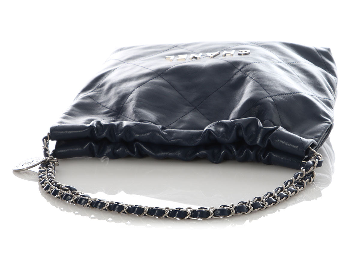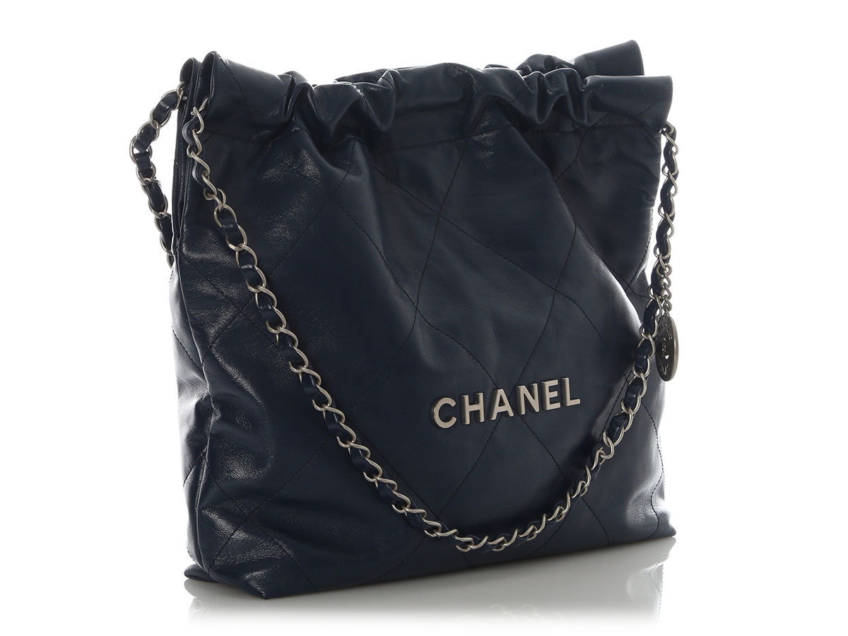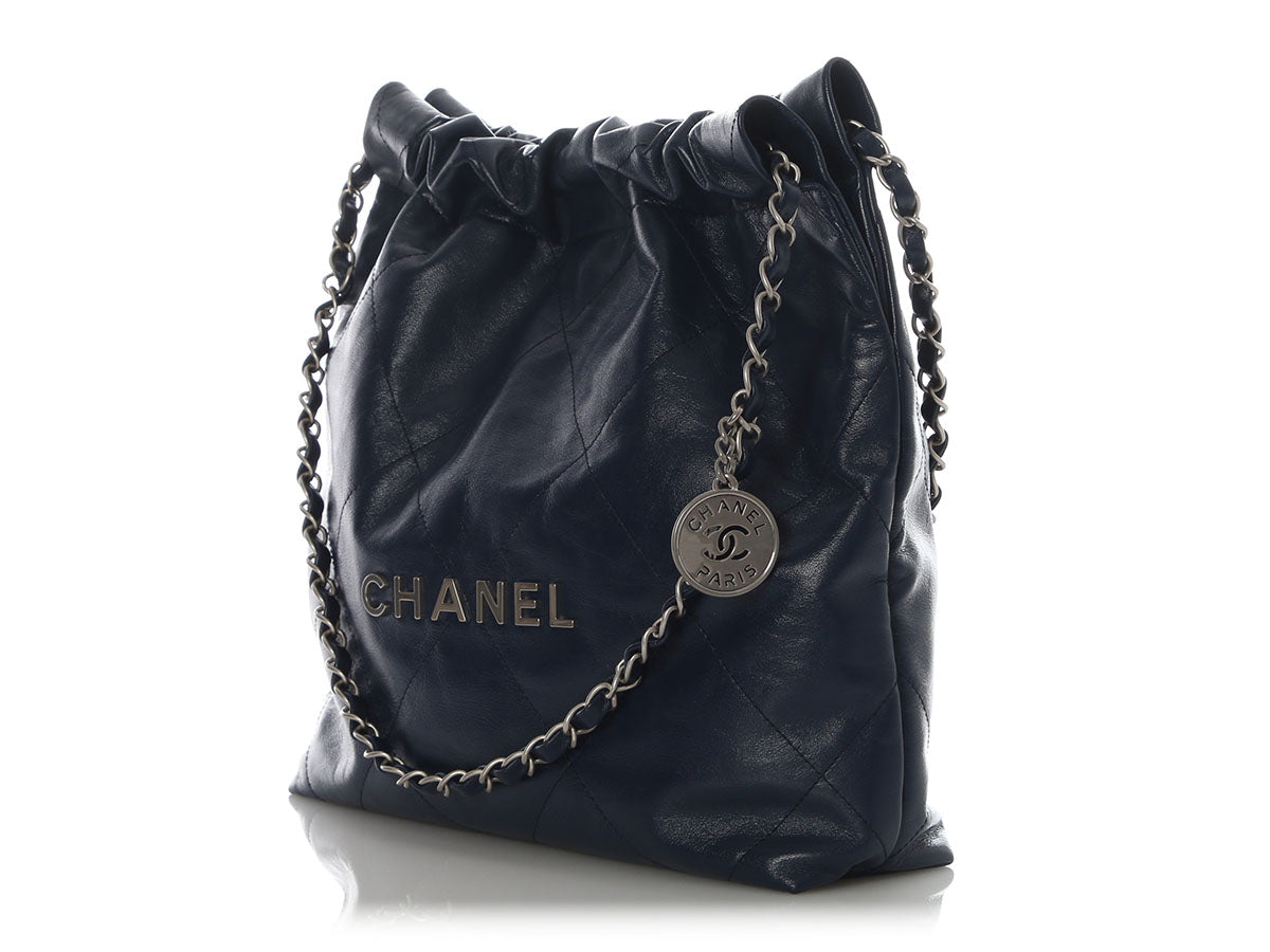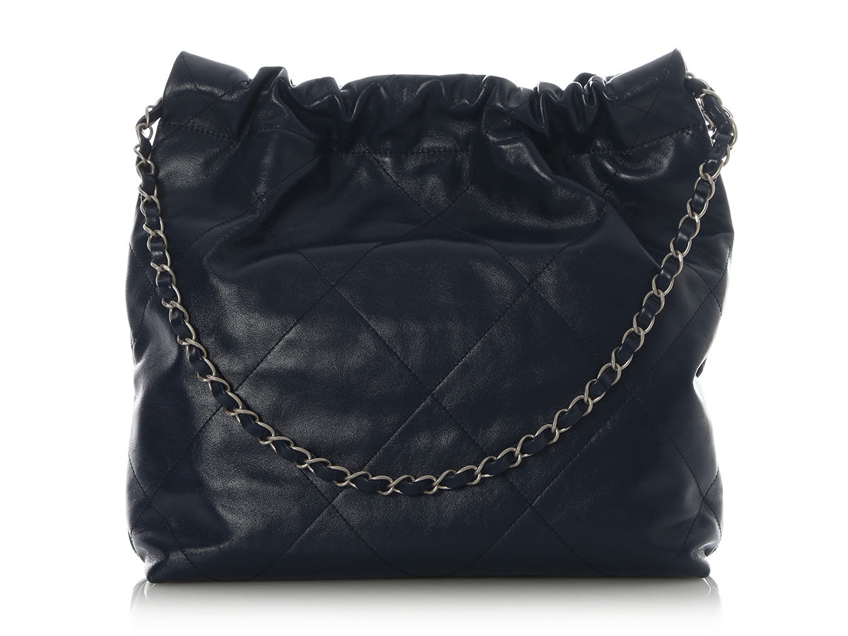 Chanel Small Navy Quilted Shiny Calfskin 22