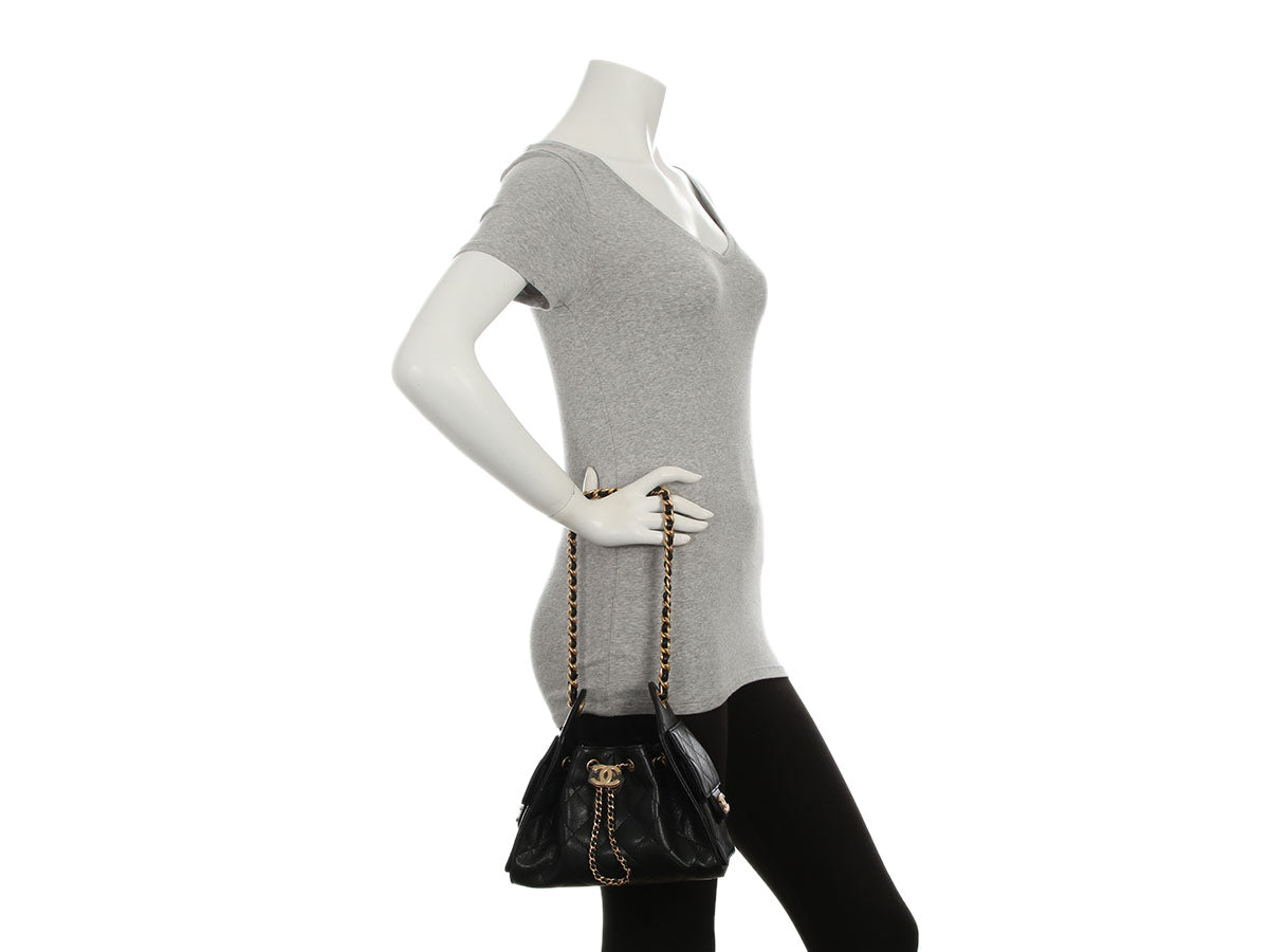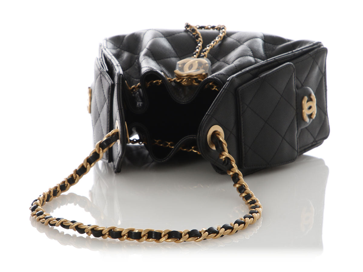 Chanel Small Black Part-Quilted Aged Calfskin Gabrielle Backpack