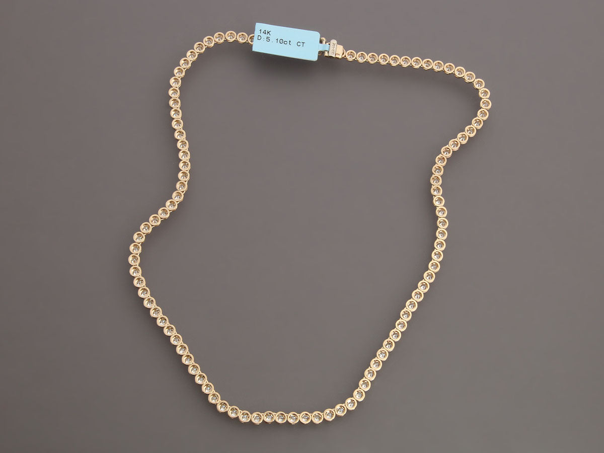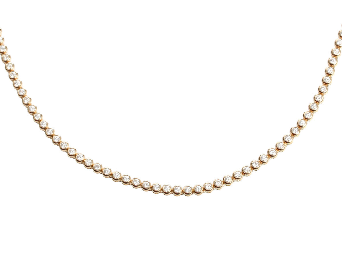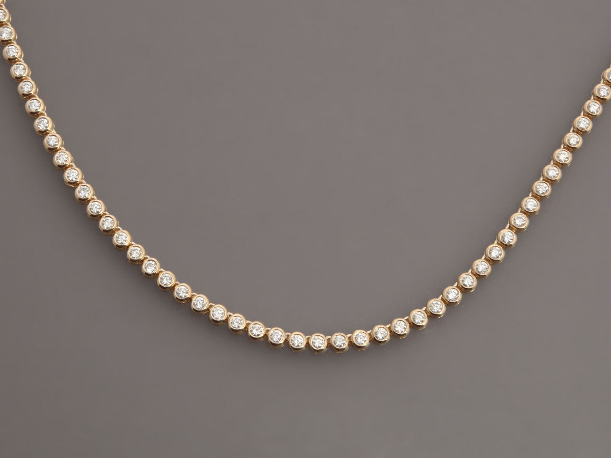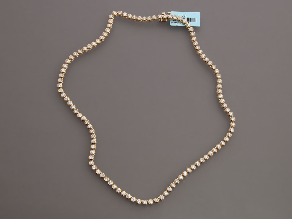 This 14K White Gold 4.09-Carat Bezel Diamond Tennis Bracelet shines with modern elegance and effortless versatility! With a total of 4.09 carats of G–H color, SI1–SI2 clarity diamonds, it layers beautifully with other pieces or holds its own as a refined stand-alone statement. Measuring 3.5mm wide, it offers a balanced presence on the wrist. New and never worn, it’s the kind of piece that quietly turns heads and never goes out of style!