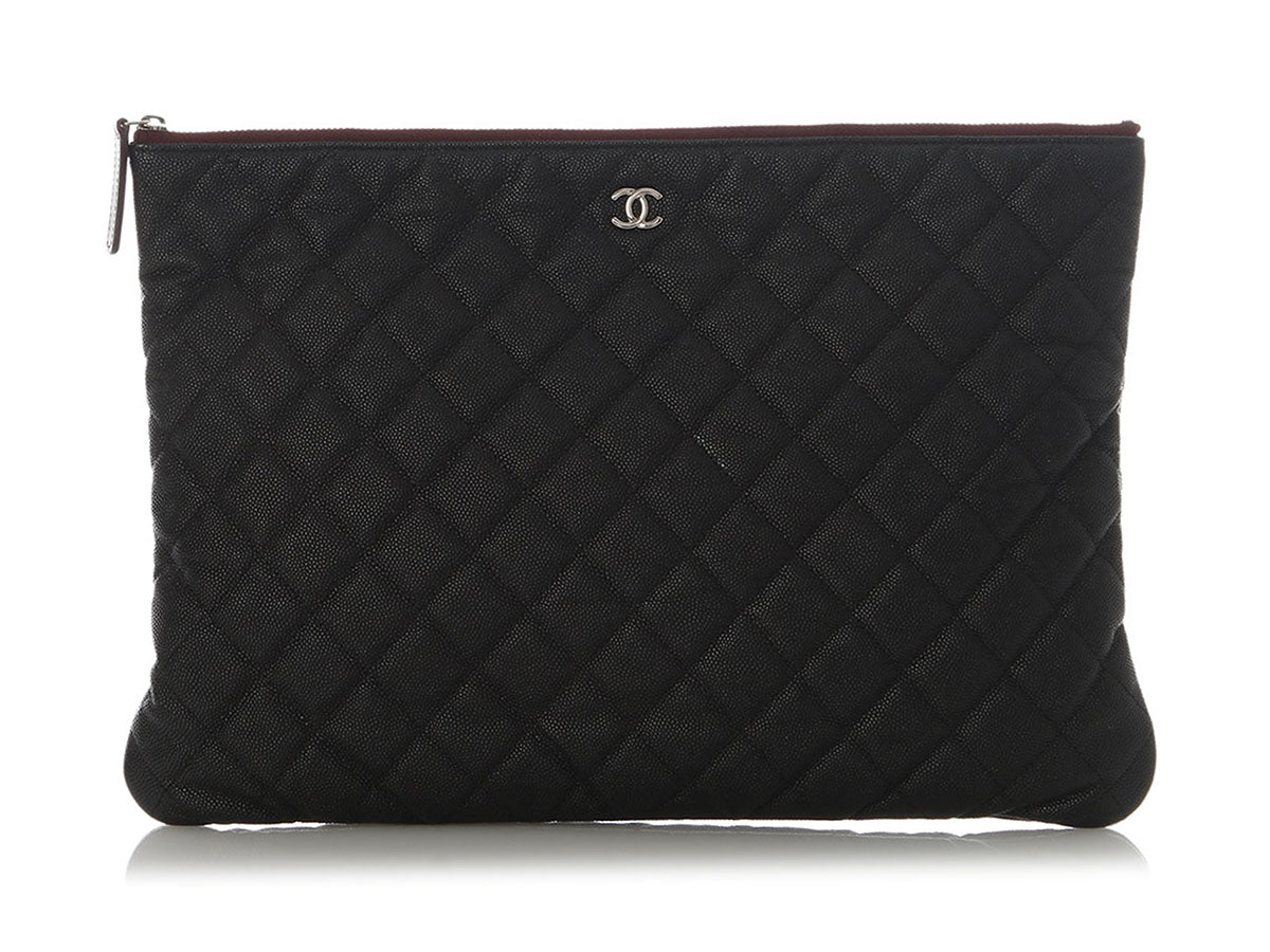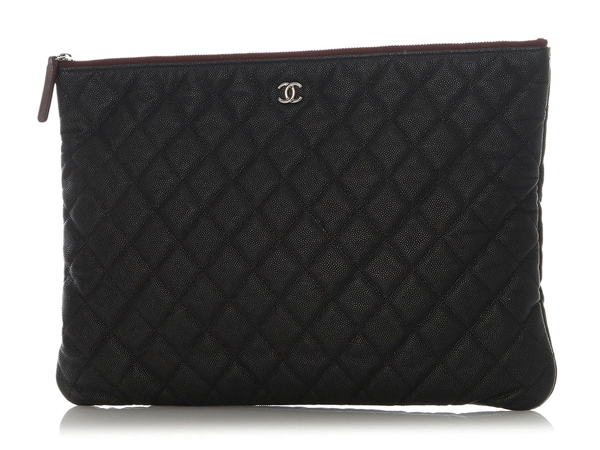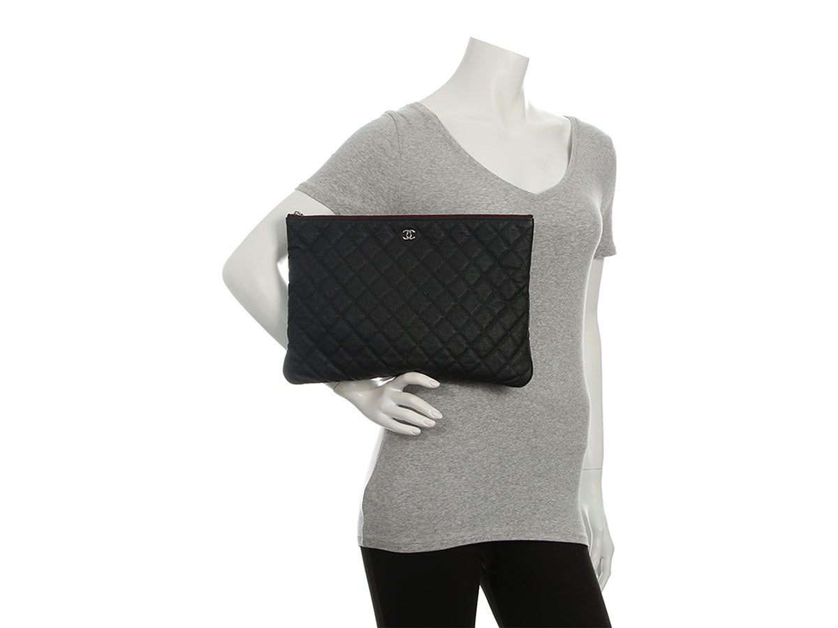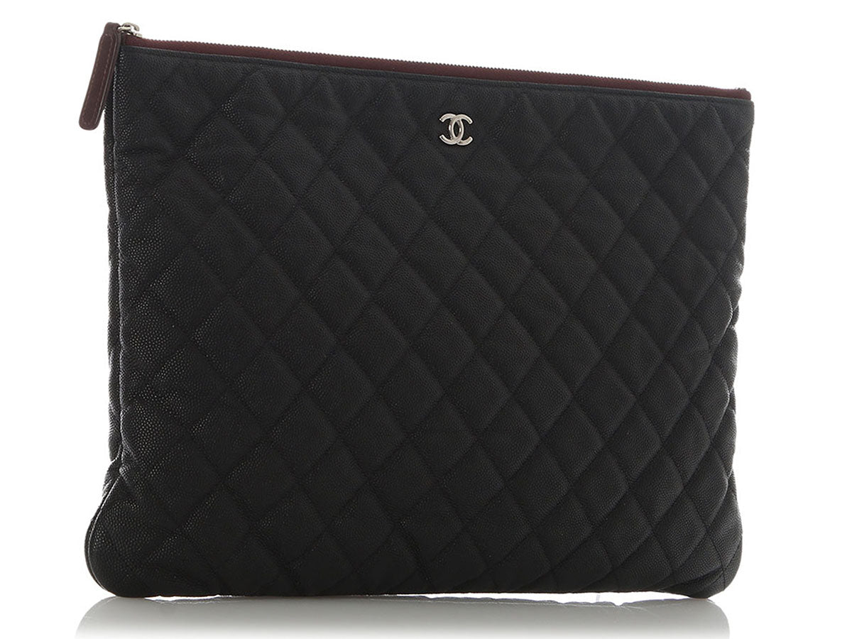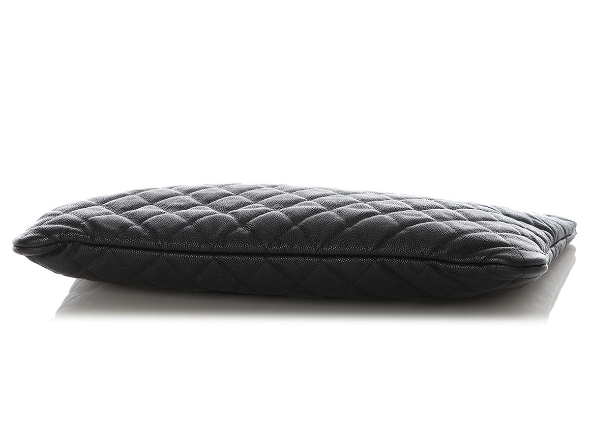 Saint Laurent Large Black Chevron Grain de Poudre Wallet on Chain