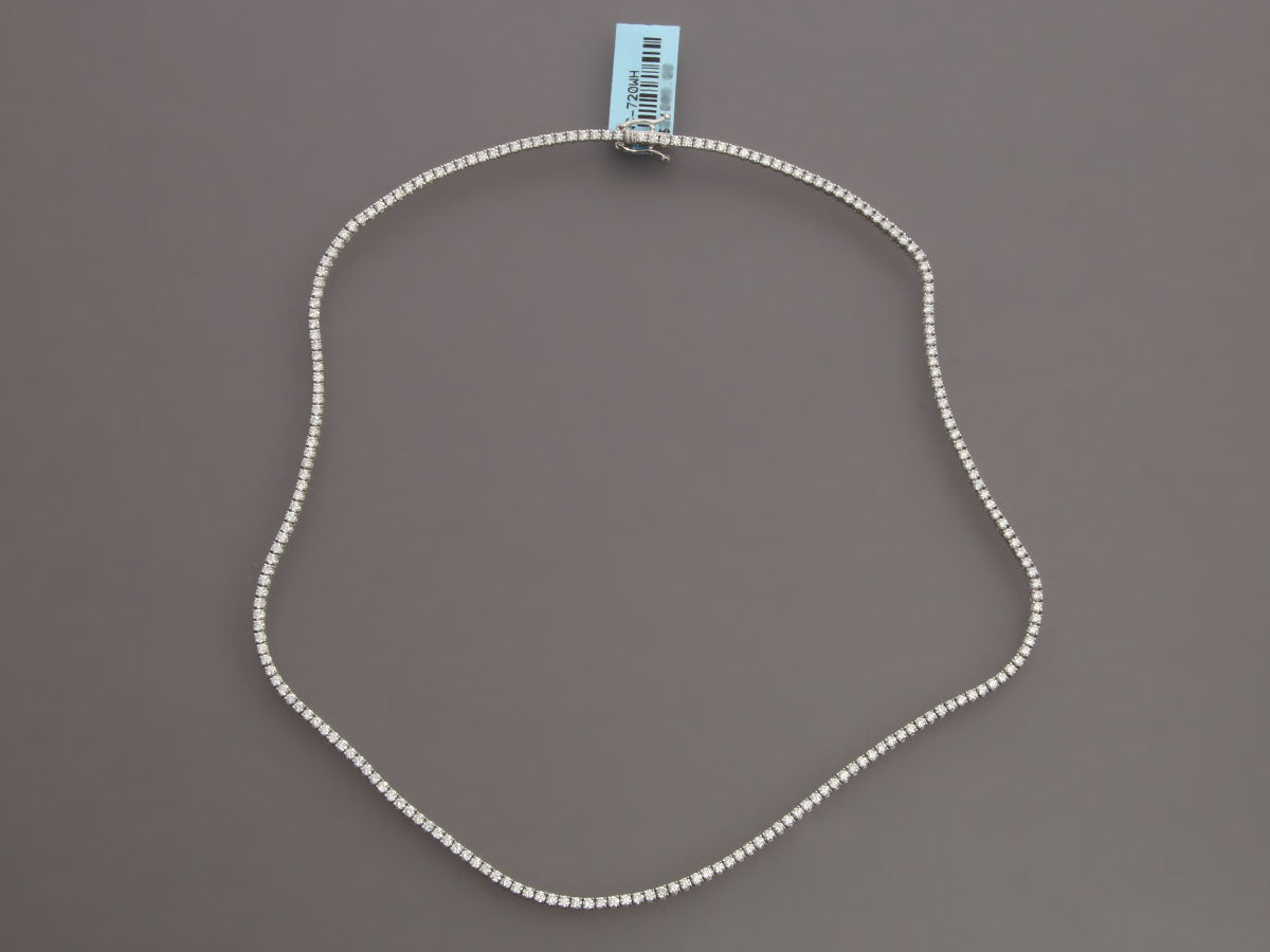 A refined essential for any jewelry collection, this 14K White Gold 4.65-Carat Diamond Tennis Necklace is a delicate twinkler at just 2 millimeters wide! With G-H color and SI1-SI2 clarity, it layers beautifully or stands stunningly on its own. Brand new, it makes a timeless gift or personal treasure!