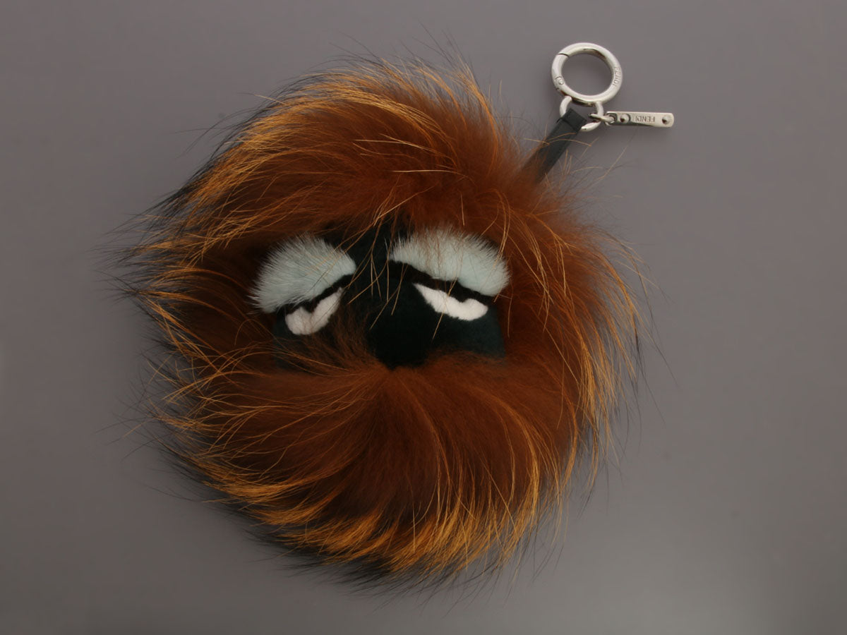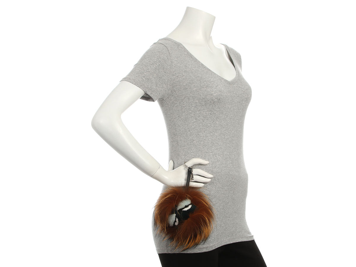 Use Fendi’s Brown and Black Fur Monster Pom Pom Charm to dress up your favorite bag with a cute, cuddly character! It's made of a mix of fox and rabbit fur, and a silver clasp on a leather strap attaches it to your bag. In excellent condition with a box and dustbag, there are some faint scratches on the hardware. It’s super fluffy, soft, and adorable!
