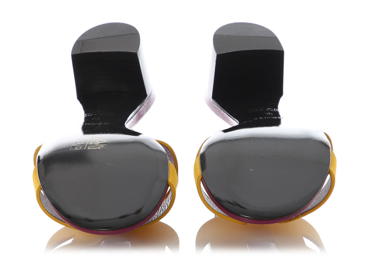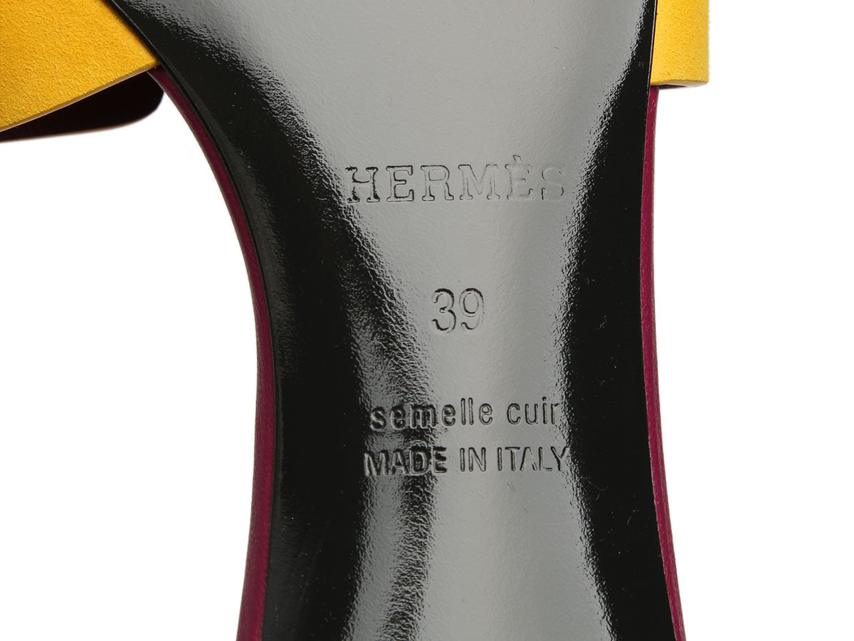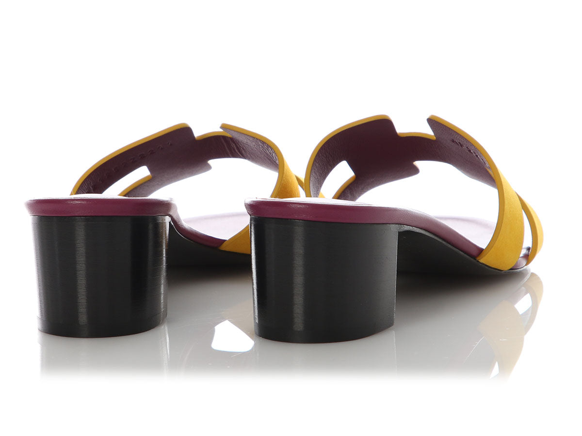 Hermès’ Purple and Yellow Oasis Sandals are a fun, funky color combo! Made of a combination of yellow suede and purple leather, they slip on and have 1.75-inch black stacked heels. New and never worn with a box and two dustbags, they’re cool and hot at the same time!
