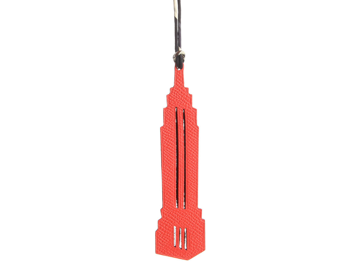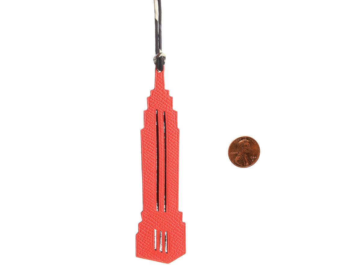 Hermès’ Empire State Building Petit H Charm adds instant NYC charm to any bag! Made of red and brown leather and suspended from a 6.25-inch silk cord, it ties effortlessly onto handles for a bold touch of Hermès whimsy. New condition with its box, it brings a skyline-worthy statement to every carry!
