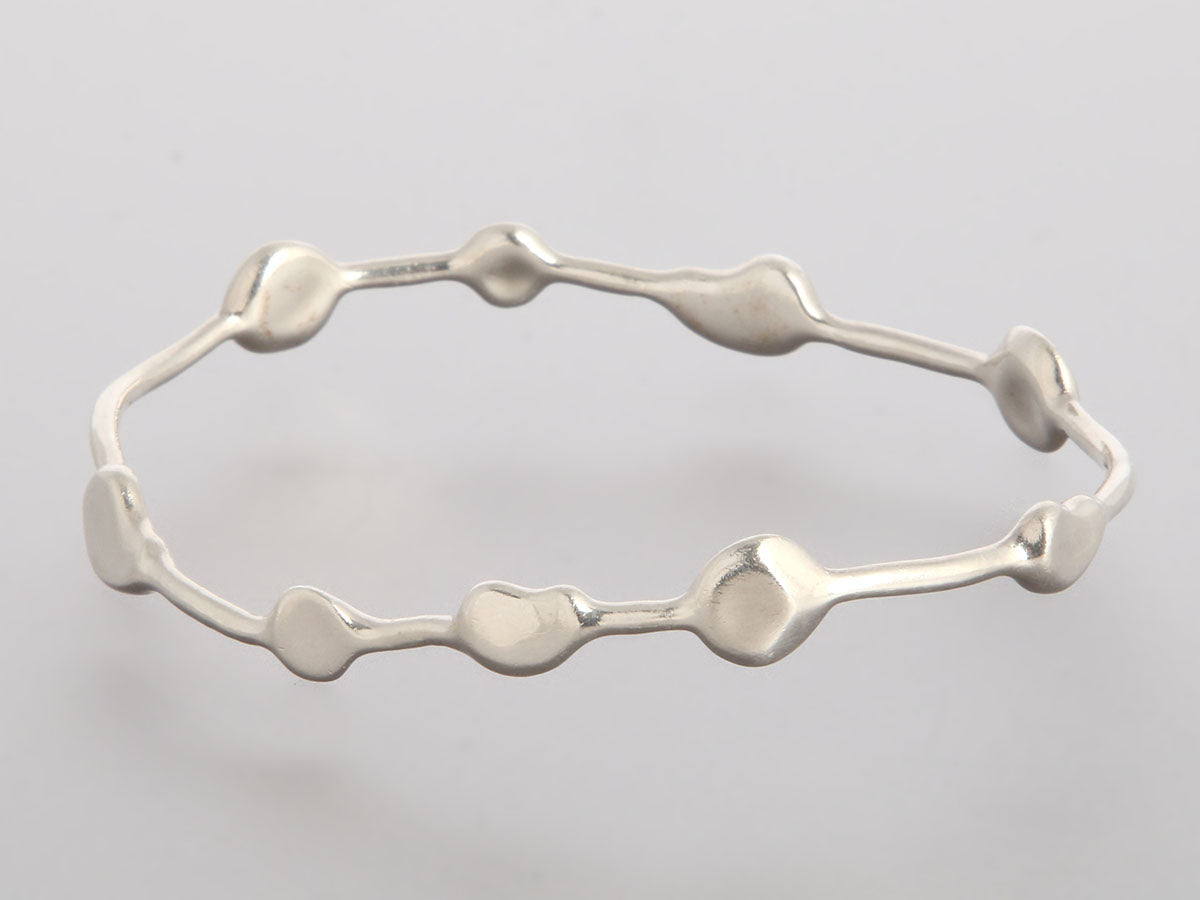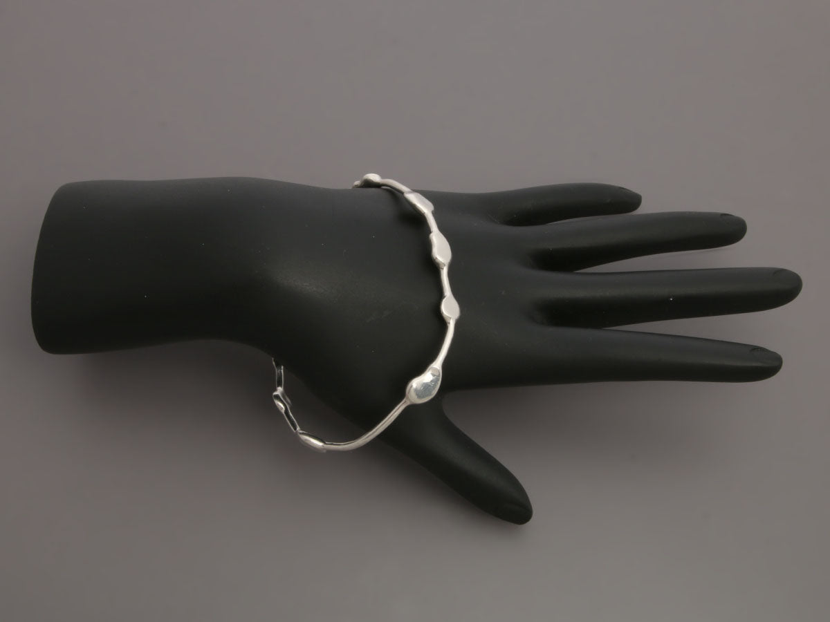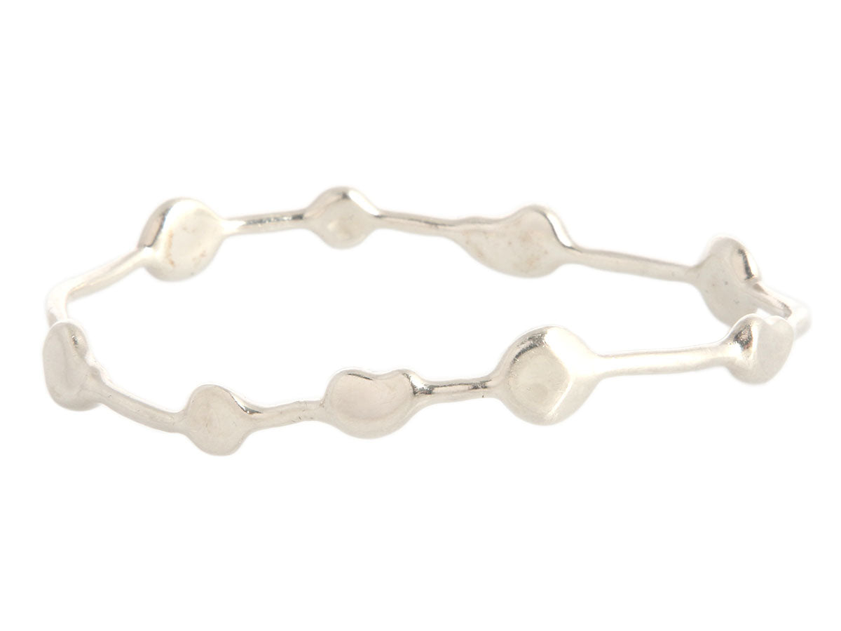 Ippolita’s Sterling Silver Bangle Bracelet brings an easy touch of sophistication to any stack! Its oval circumference features rounded stations along its length and it comes in good condition with a pouch and marks on the metal. This is a timeless piece that gleams with understated elegance!