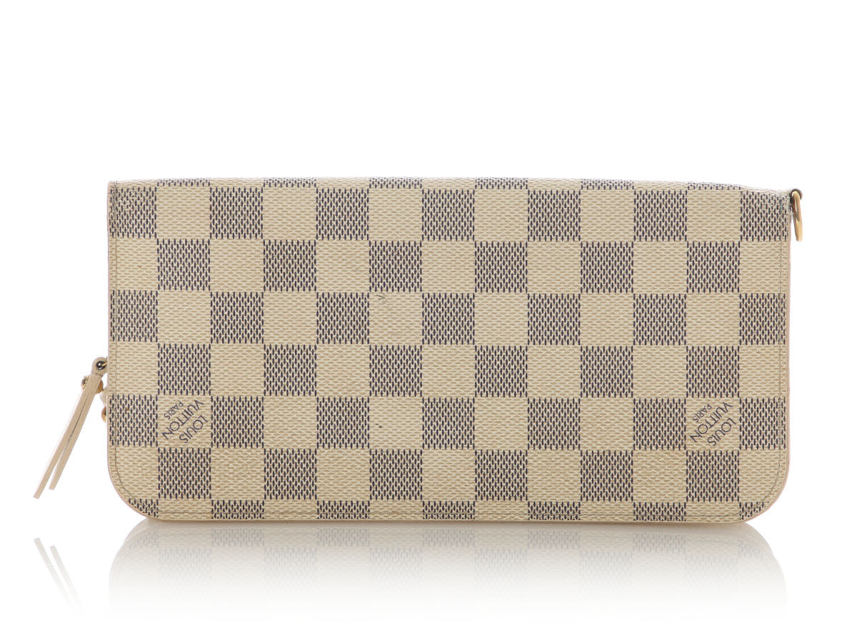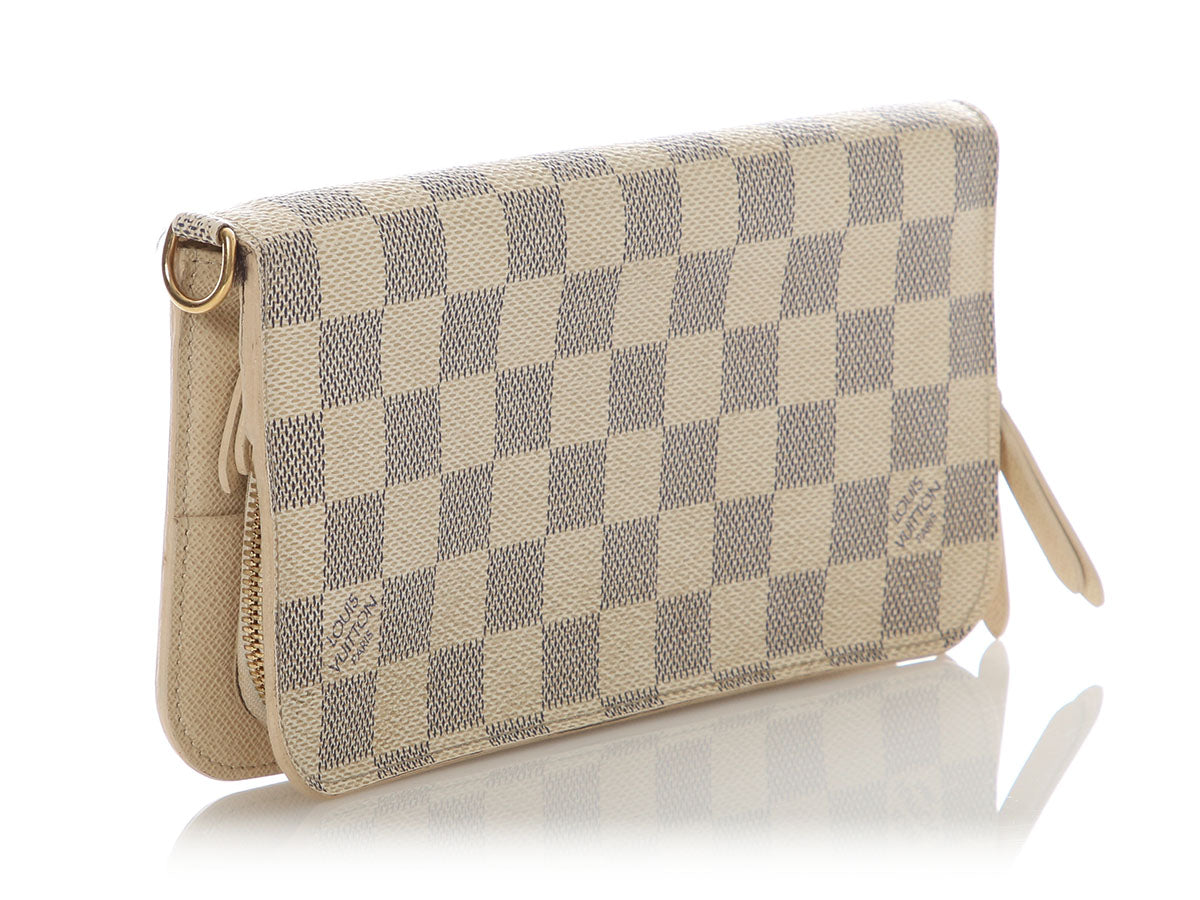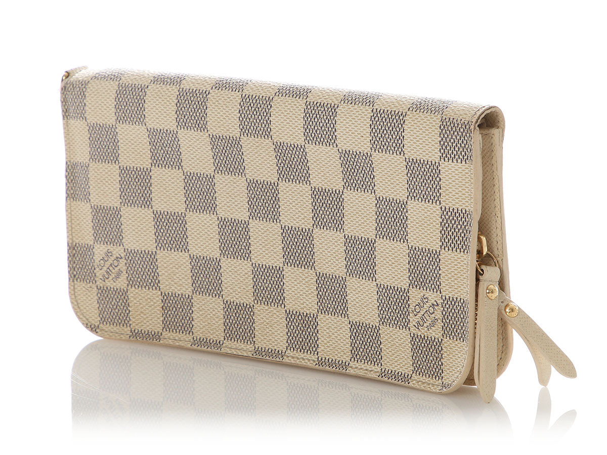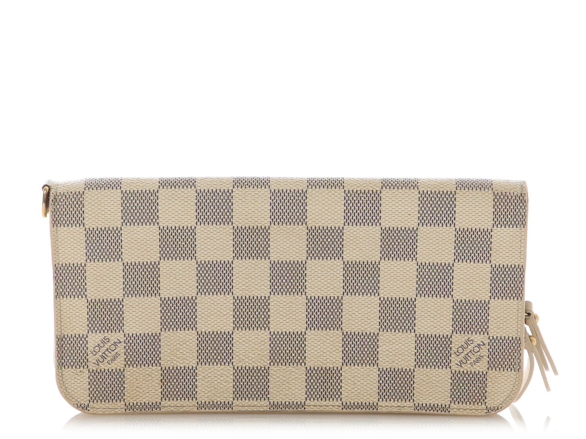 Louis Vuitton’s Damier Azur Insolite Wallet brings roomy, travel-ready function wrapped in checkered Damier charm! This ultra-roomy piece unzips to reveal an off-white leather interior with two zipped pockets, two slide pockets, and 12 card slots. Previously loved, it has wear on the corners, edges, zipper pulls, and inside, scratches on the gold hardware, peeling and cracking on the glazing, and a handful of marks and stains throughout. Its longer silhouette is designed to carry far more than the everyday basics with ease!