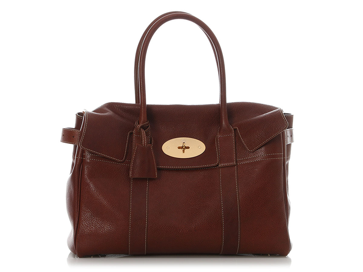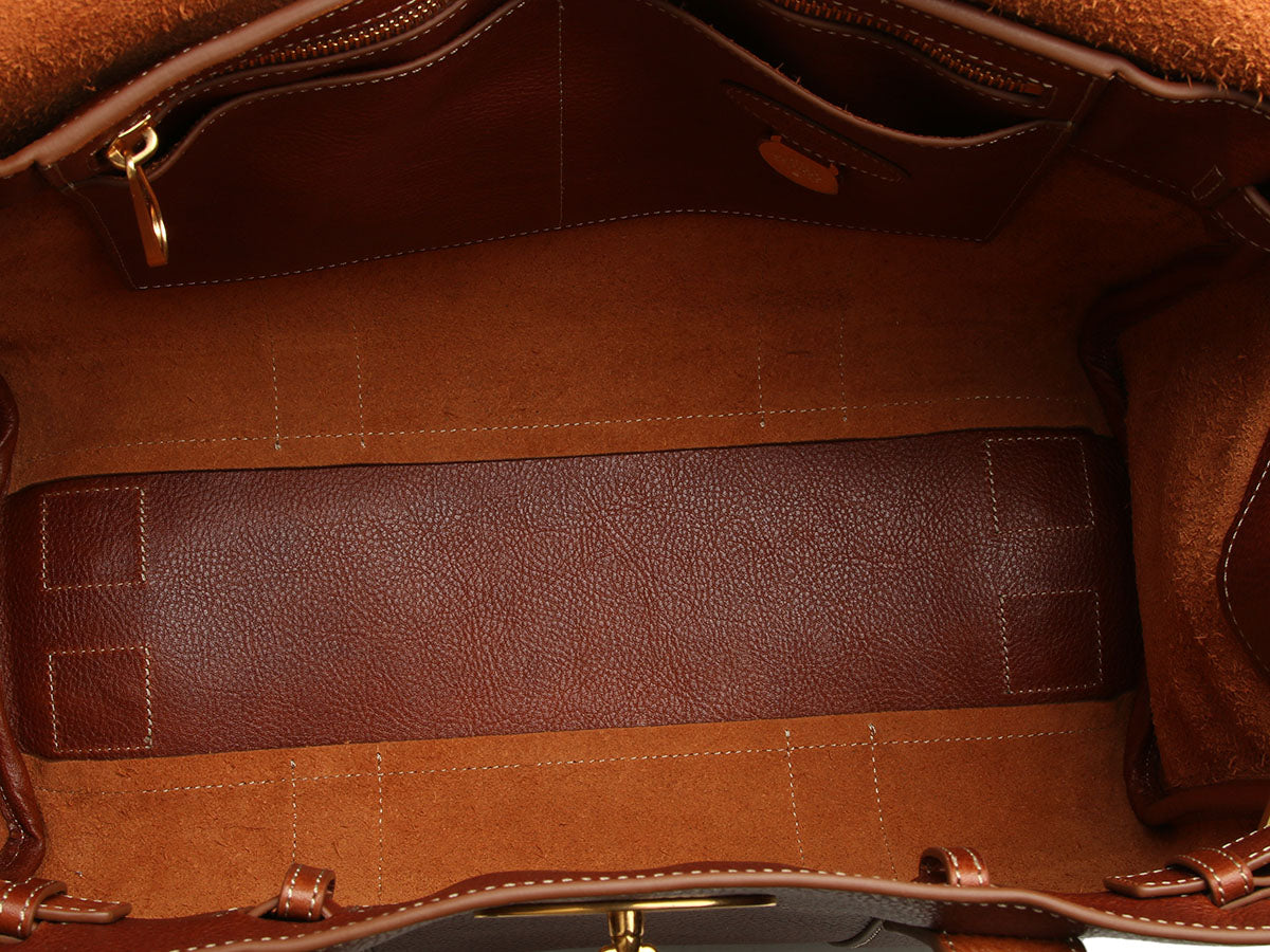 Mulberry’s Oak NVT Bayswater brings heritage charm and beautifully grained leather to a beloved silhouette! Crafted from thick, richly brown leather with gold hardware, it features dual handles with a 5.5-inch drop, a flap with postman’s lock, and adjustable belted sides for added versatility. The unlined interior offers one zipped pocket and two slides, and the bag has a satisfying weight thanks to the substantial leather. In great condition with a dustbag, clochette, lock, and info booklet, it has scratches on the hardware (with protective plastic still on the front), wear on the corner, a few white marks at the base, scattered exterior scratches, and light interior fuzziness from use. This Bayswater is a beautiful blend of craftsmanship and character!