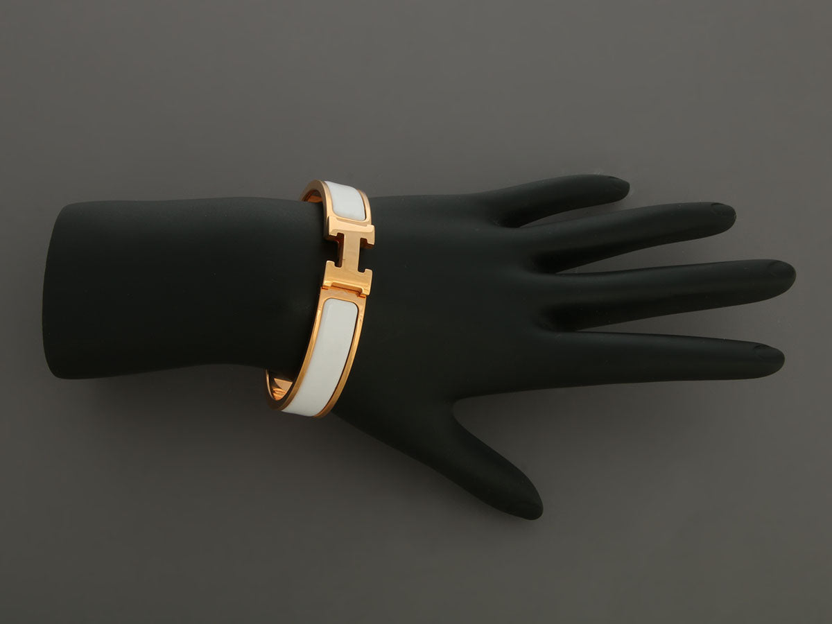 Hermès Narrow White Clic-Clac Bracelet