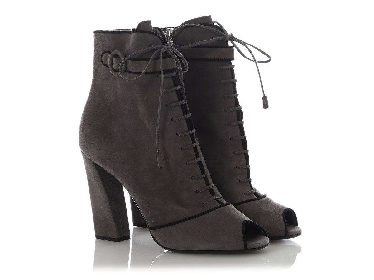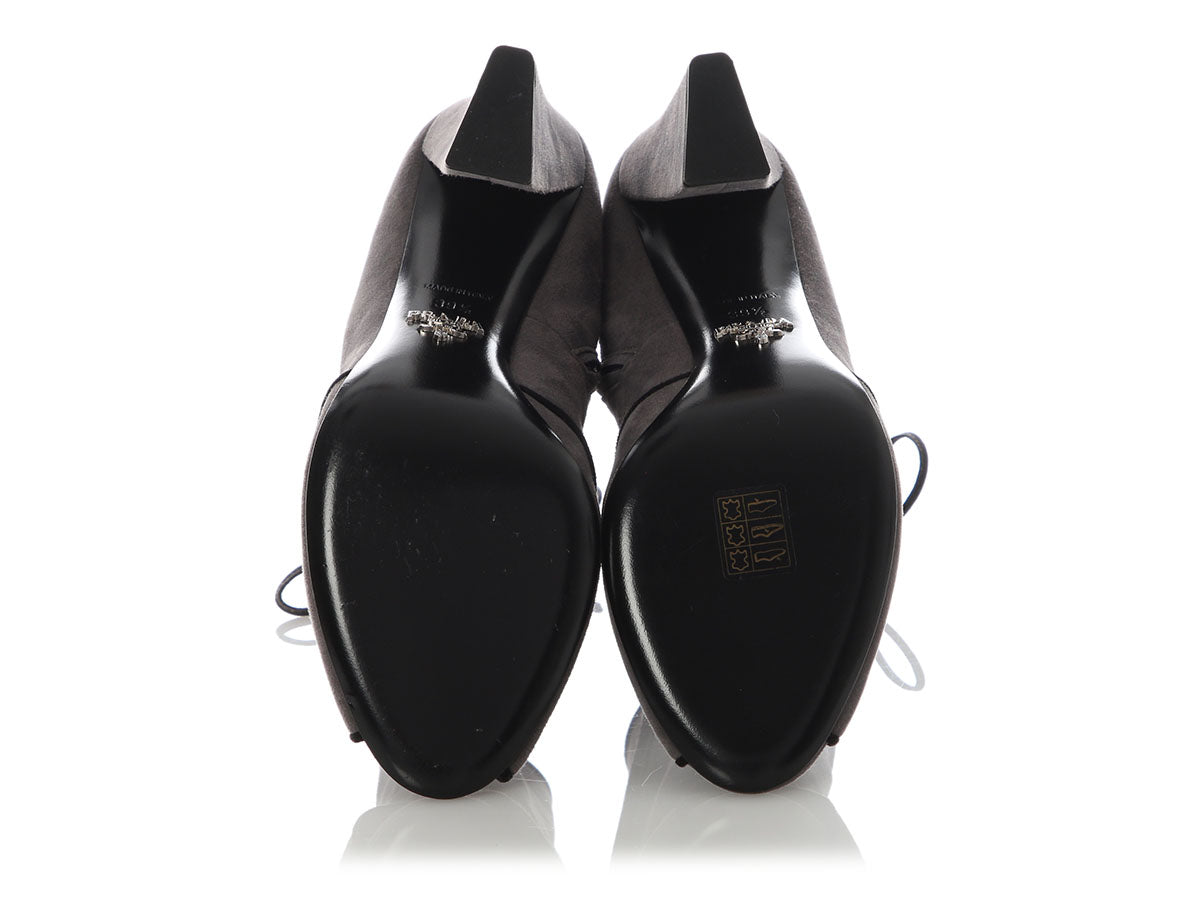 Prada Gray Suede Lace-Up Open-Toe Booties