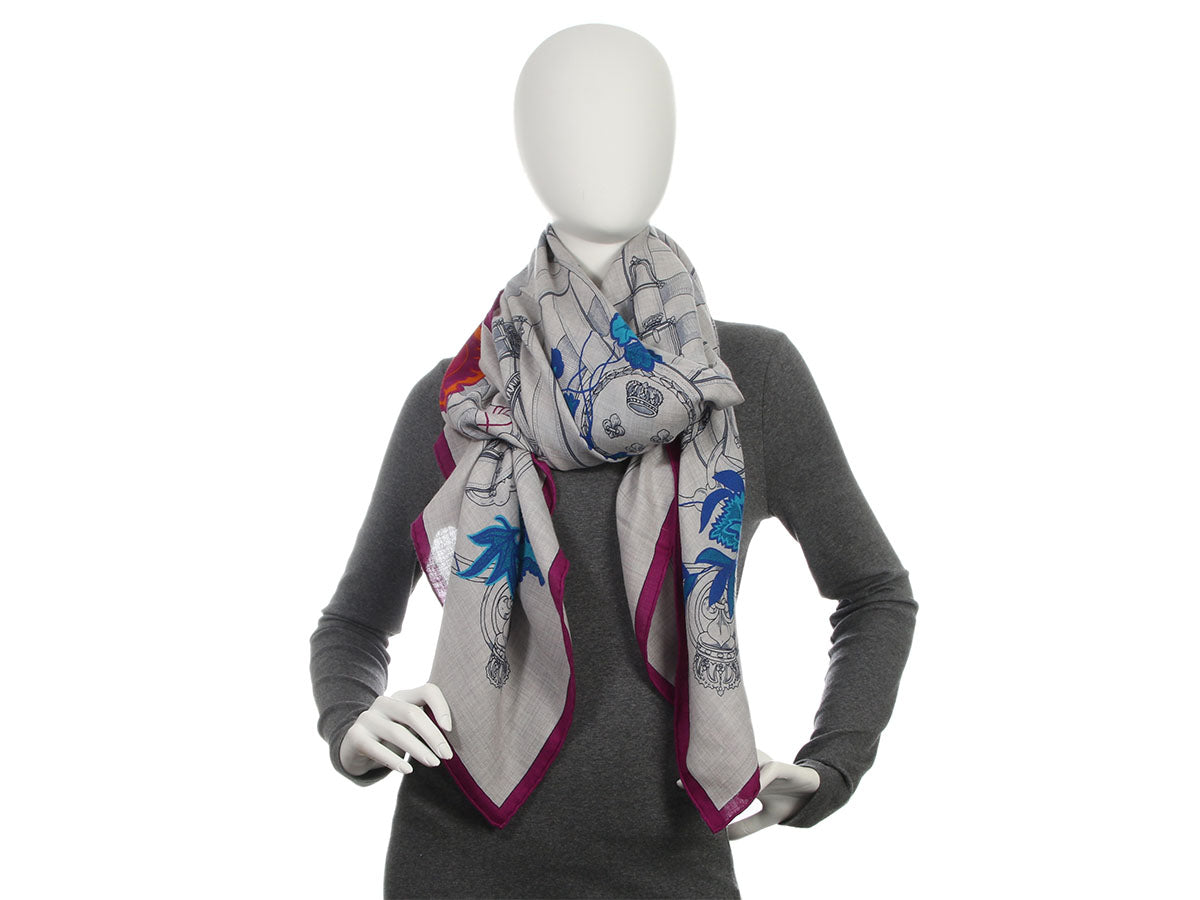 Chanel’s White and Multicolor Dragon Scarf is a luxurious look with an Asian flair! It's made of 100% silk with a multicolored dragon on it. In great condition, it has a faint perfume smell, a few wrinkles, and a few tiny runs along the edges. It’s an exotic Eastern accent!