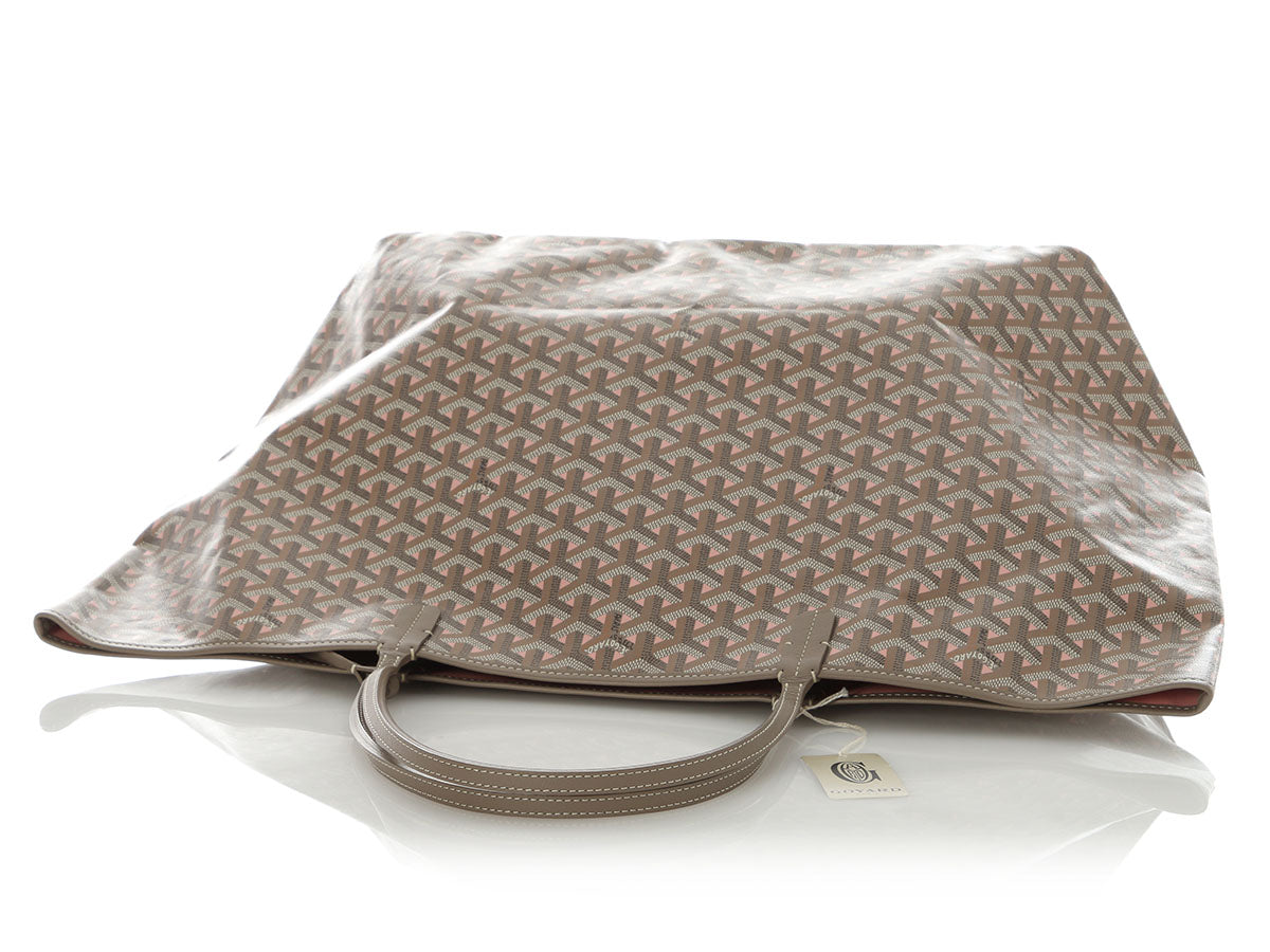 Goyard’s Limited Edition Greige and Pink Saint-Louis Claire Voie GM brightens every outing with its sophisticated palette! Styled with silver hardware, gray leather trim with white stitching, and pink-and-gray Goyardine canvas, it carries comfortably by handles with a 7.5-inch drop and features an open-top design with a detachable snap case for essentials. The interior is finished in pink fabric for a soft pop of color. Brand new with a dustbag, this rare variation of the Saint-Louis delivers effortless charm with everyday ease!