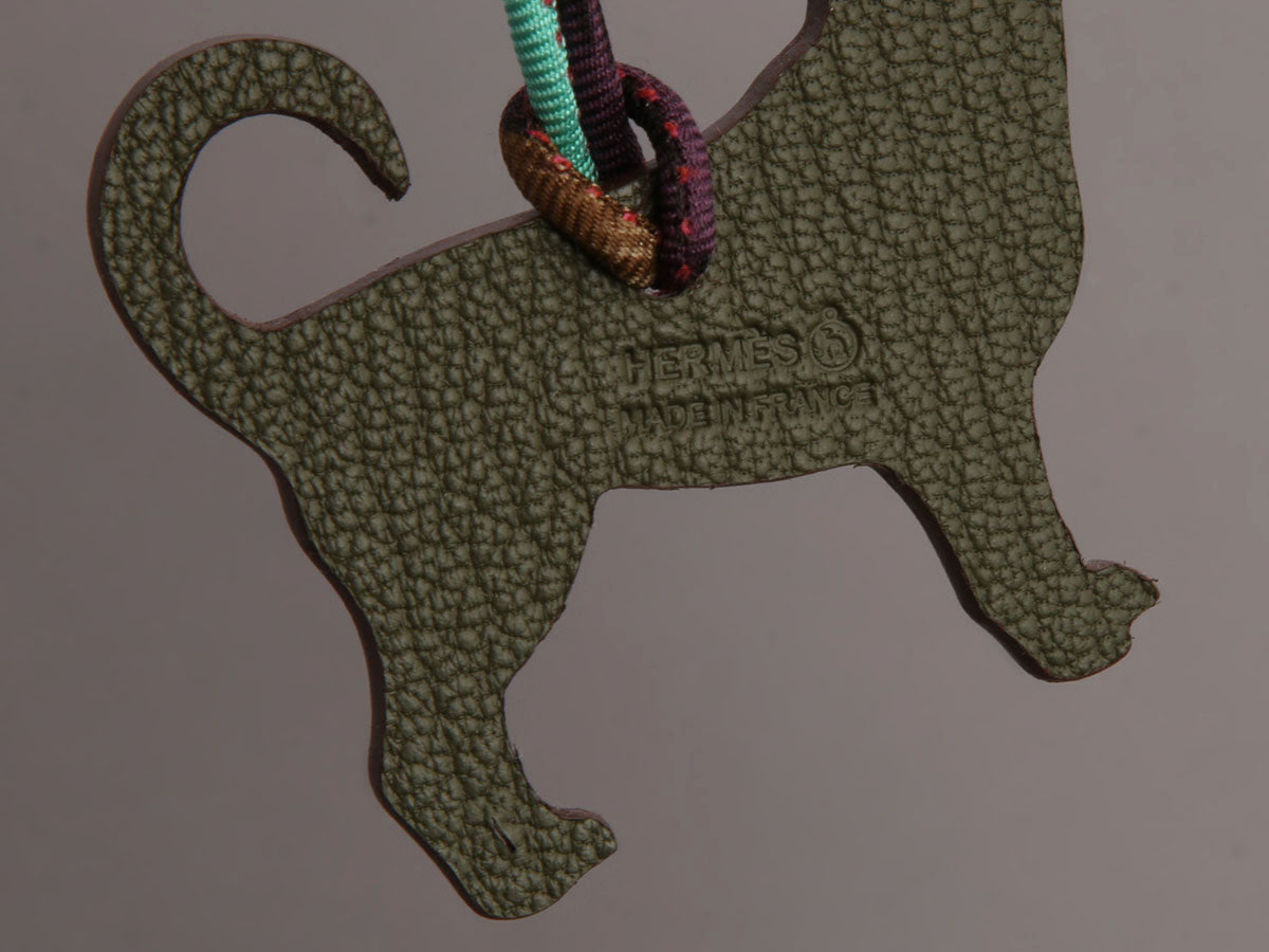 Hermès’ Chihuahua Petit H Charm is sweet and spirited, crafted in playful pink and green tones! Made without hardware and suspended from a 5-inch silk cord, it ties easily onto handles for a whimsical pop of color in a compact silhouette. New with its box, it adds a fun canine flourish to any bag!