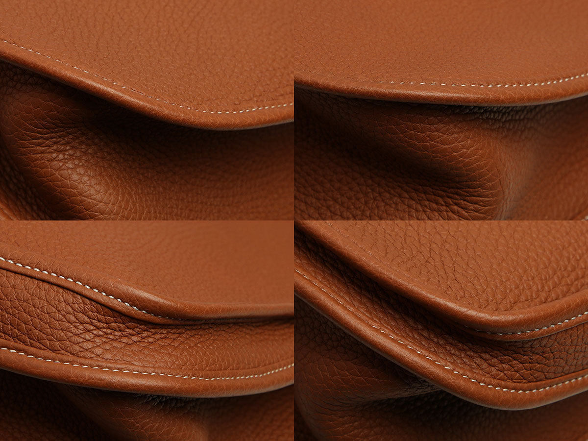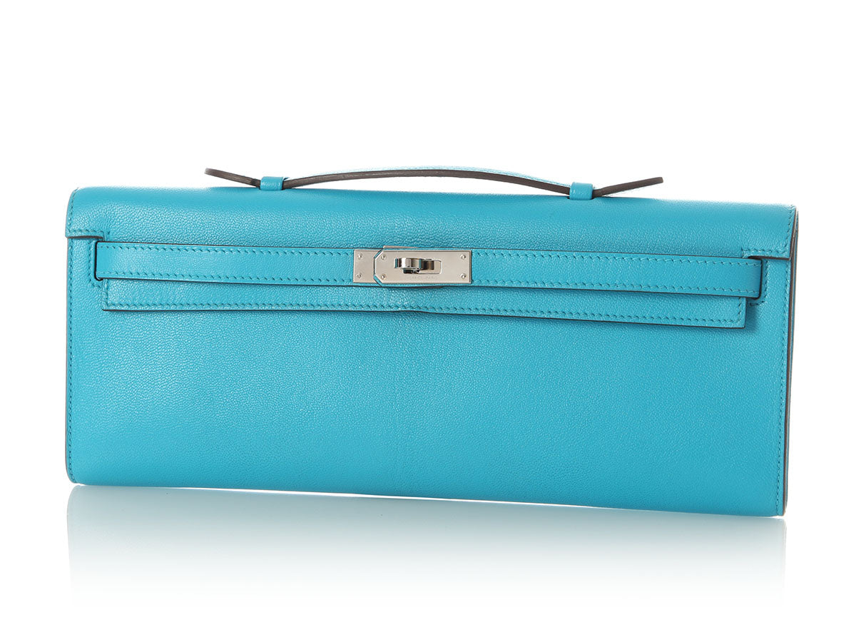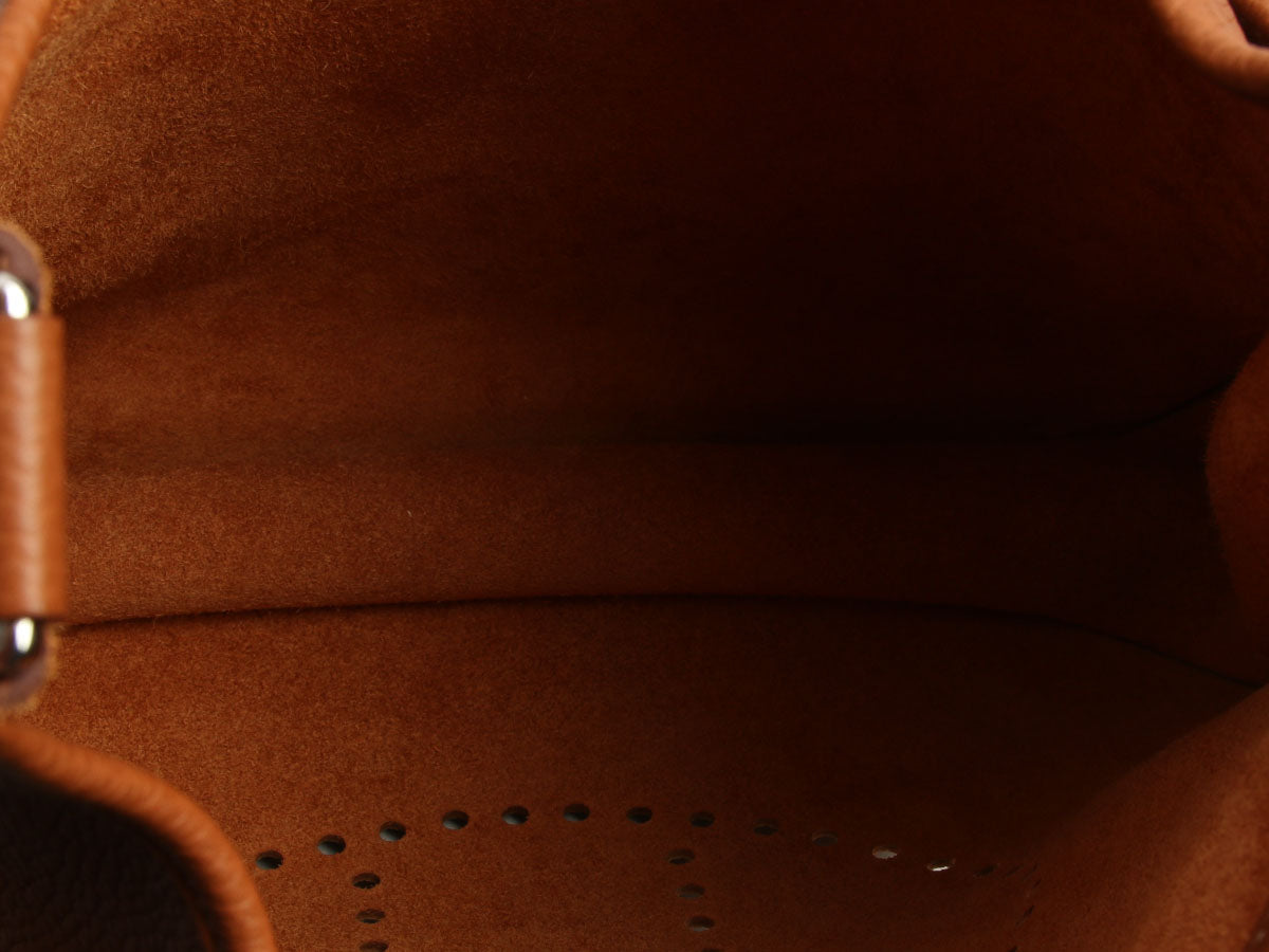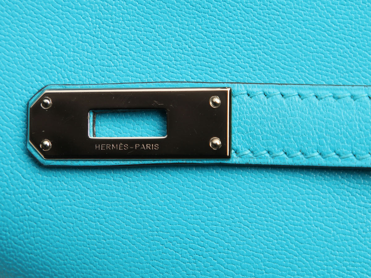 Hermès’ Graphite Clémence Birkin 35 is a large, slouchy top handle with presence! Paired to good effect with palladium feet and hardware, the turnlock can be secured with the padlock and keys that are kept in the leather clochette when not in use. Tonal gray leather lines the interior that has one zipped and one slide pocket, and the dual rolled handles have a 4-inch drop. In very good condition and stamped with an N in a square, it comes with a dustbag and has partial plastic but one uncovered foot is scratched and there is a faint mark on the back of the bag. A word to the collector—despite the mini bag trend, which is still going strong, larger Birkins like this 35 are coming back into their own!