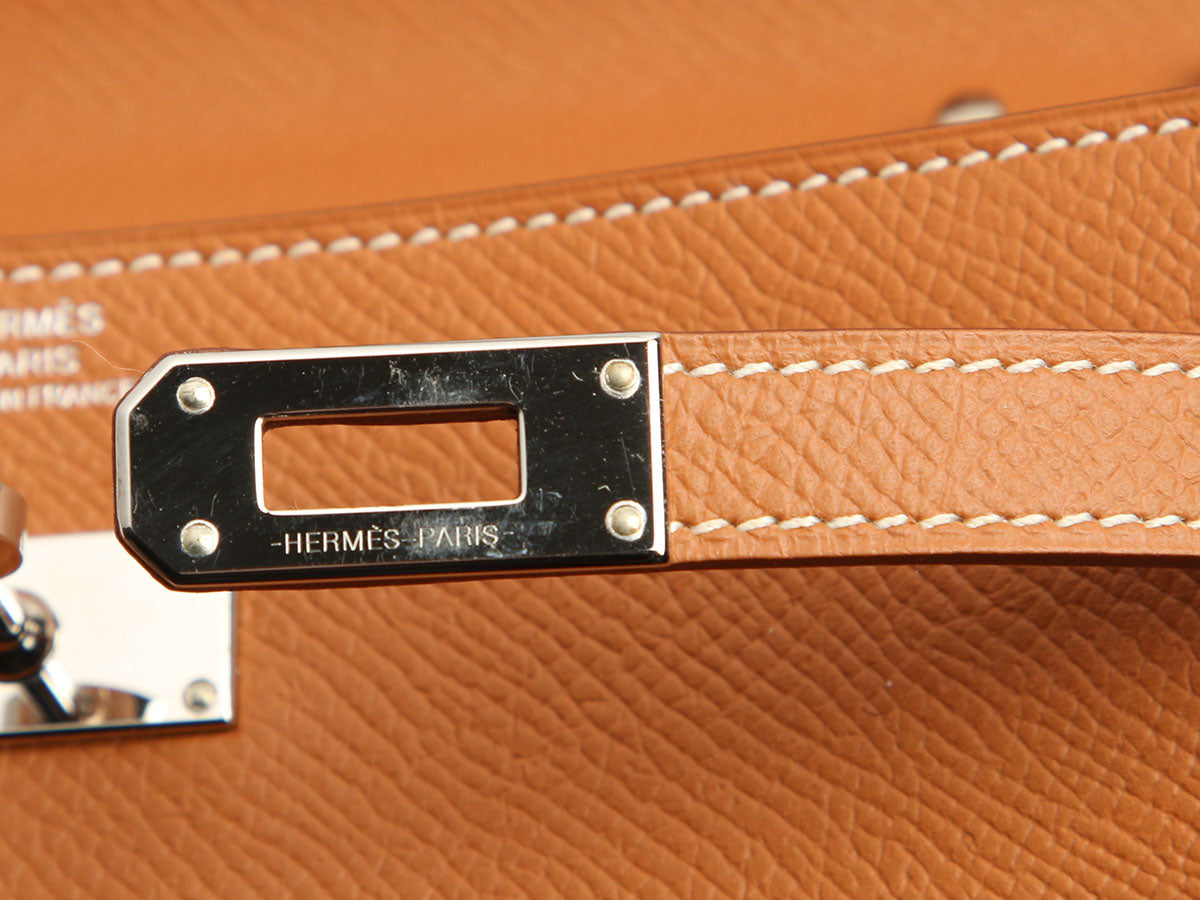 Hermès’ Black Epsom Mini Kelly 20 is a petite powerhouse that delivers timeless elegance in the most irresistible proportions! Made of black leather with a 20-centimeter bottom and gold hardware, it secures with sangles and an Hermès turnlock closure. The black leather-lined interior has one slide pocket, and the single rolled handle has a 2-inch drop, but when you attach the narrow leather strap, this top handle becomes a crossbody. In excellent condition from 2021 (Z stamp), it comes with plastic on the hardware, a dustbag, and a box, and has a small spot inside. This Kelly is just the right size for a fancy meet-and-greet or a quick dash to the store in flip-flops and yoga pants!